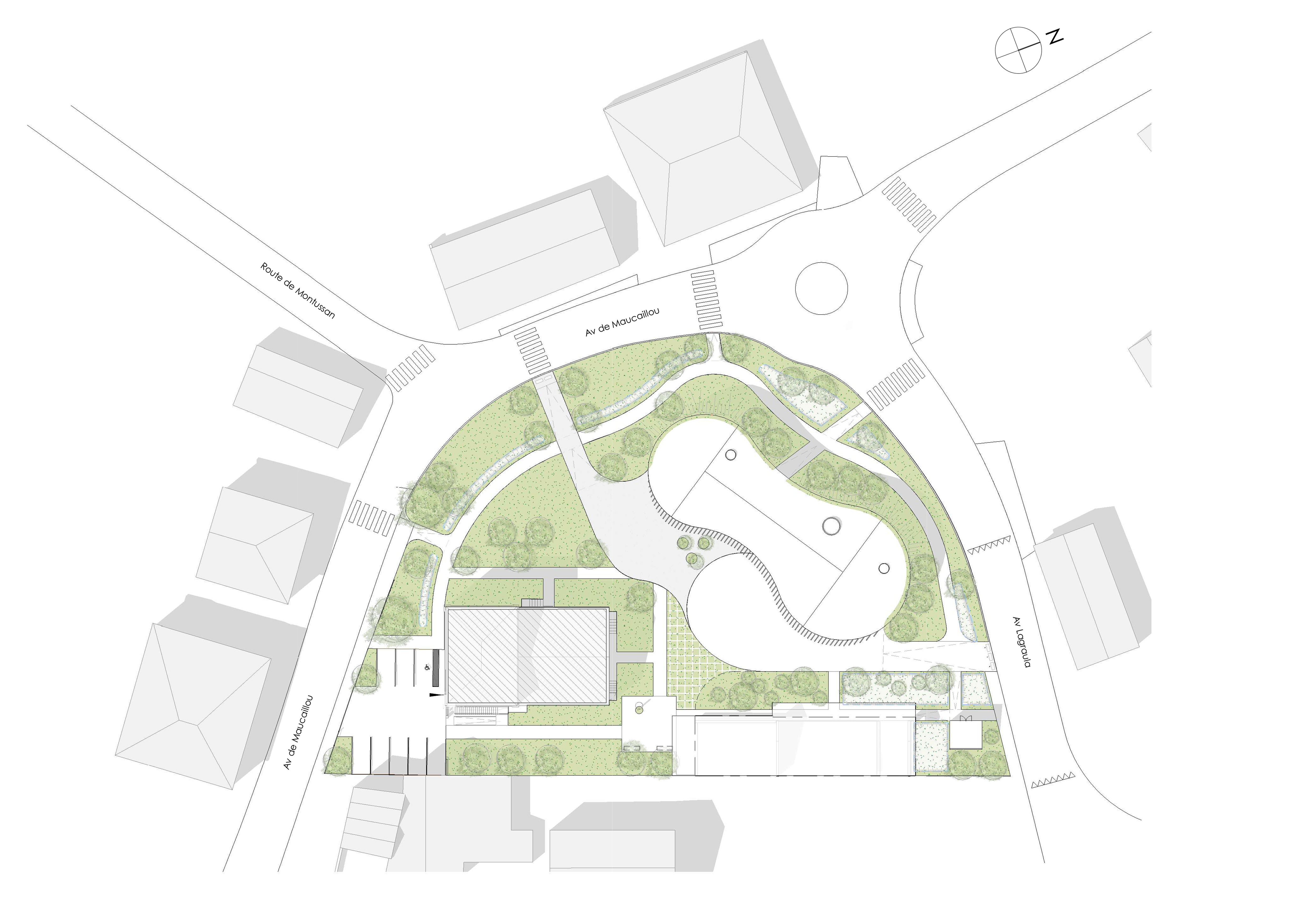 La Halle de Saint-Sulpice-et-Cameyrac, d'une architecture sobre et contemporaine, s'intègre harmonieusement au cœur d'une commune au riche patrimoine architectural et viticole. Implantée en centre-bourg, cette halle de 600 m² dynamise la vie locale en offrant un espace polyvalent pour les événements communaux. Sa conception soignée inclut une façade filtrante, préservant les usagers des flux routiers tout en assurant une connexion fluide avec les équipements voisins et en favorisant les rencontres et échanges.