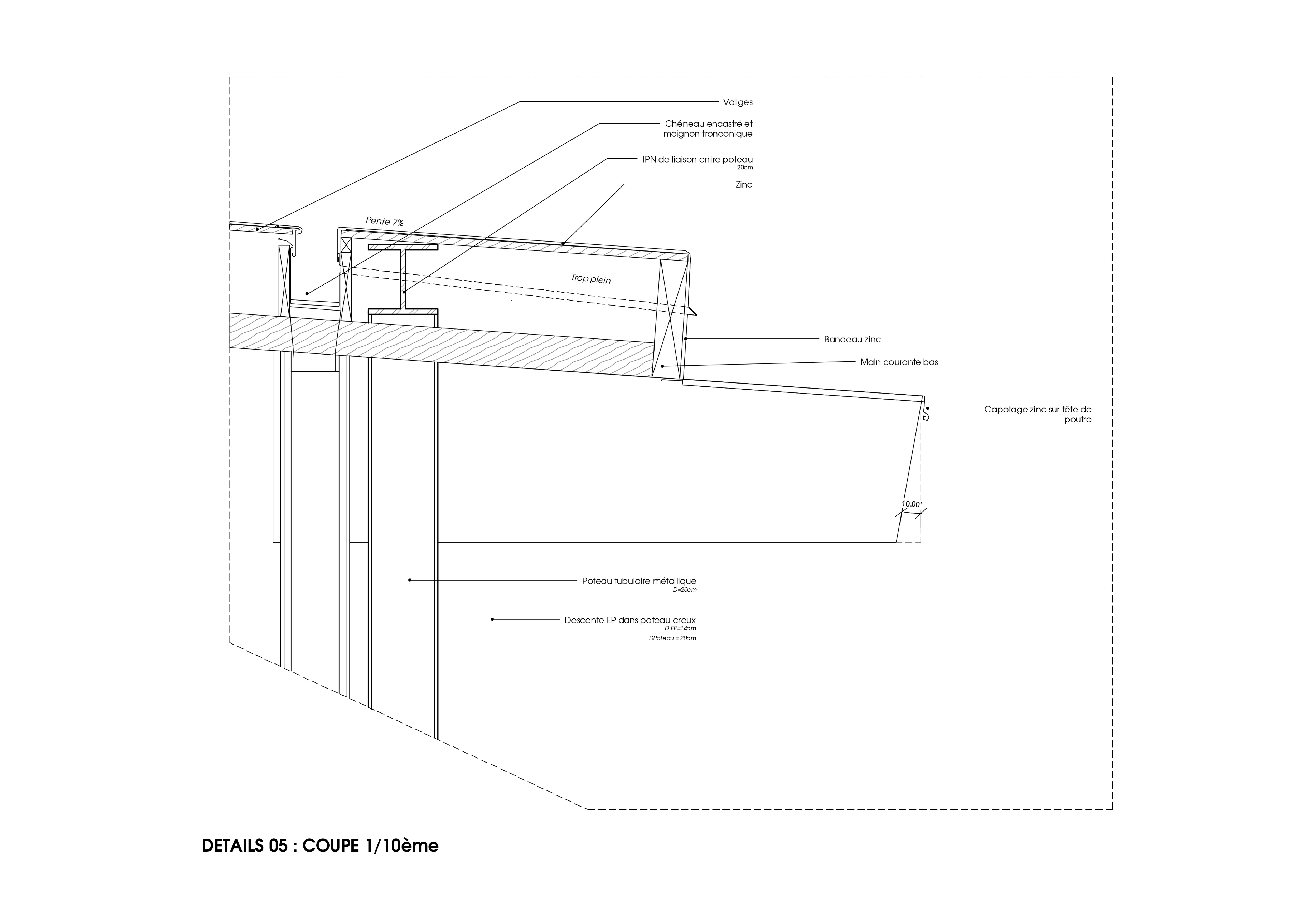 Descriptif technique : L'aménagement de la Halle repose sur des techniques innovantes, valorisant le bois lamellé-collé et les panneaux CLT, issus d'une filière locale et certifiés Bois de France. La charpente en Pin Maritime hors aubier, rare à cette échelle, intègre 70 m³ de bois lamellé-collé des Landes de Gascogne et 31 m³ de panneaux CLT, garantissant stabilité, rapidité de mise en œuvre et performance thermique et acoustique. Un suivi rigoureux du bois dès sa récolte et une structure provisoire complexe ont représenté un défi technique majeur, illustrant un savoir-faire unique. Ce projet allie innovation, durabilité et exemplarité environnementale.