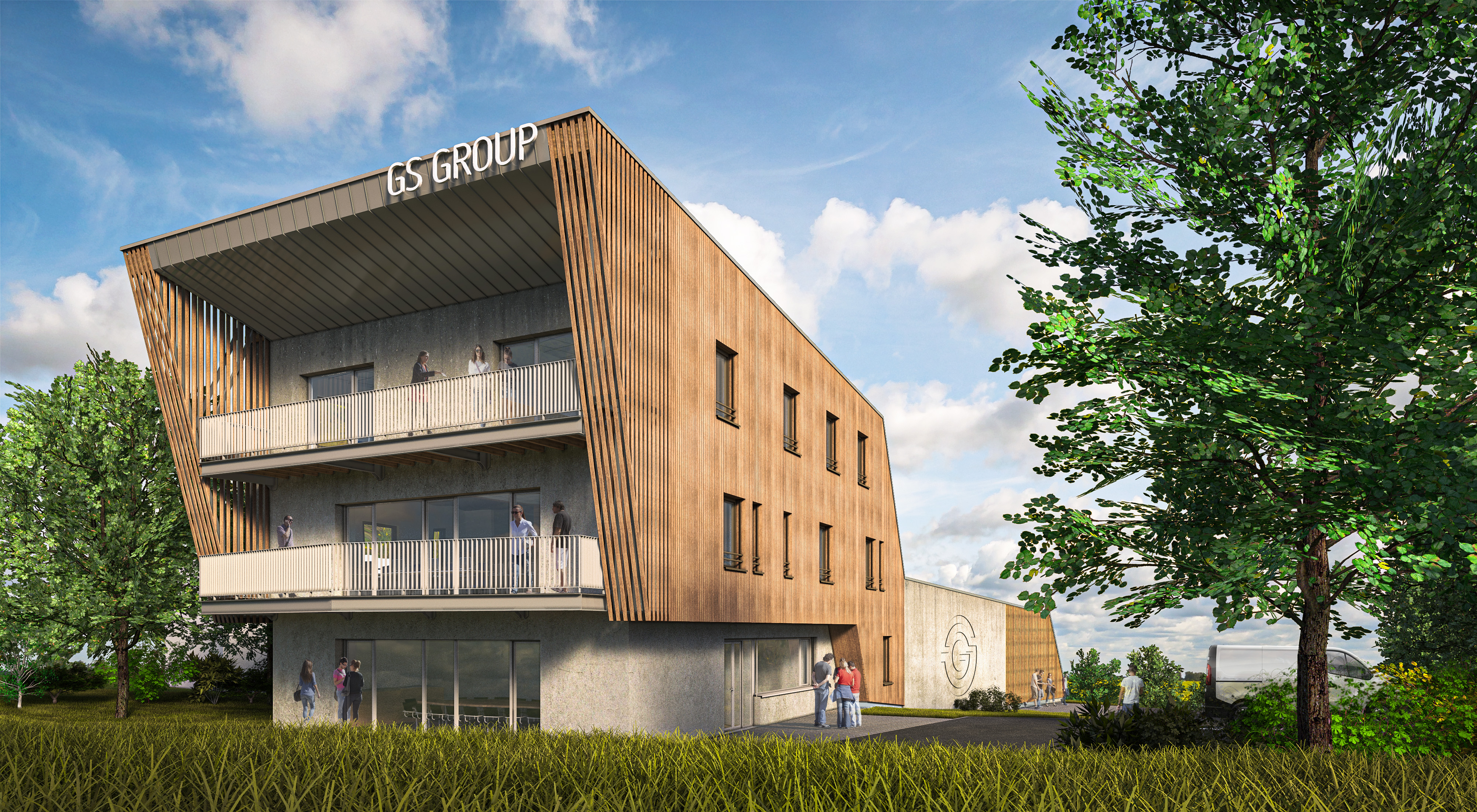 Le bâtiment présente une forme allongée qui s’étire du sud au nord pour relier le cœur de la ZAC à la route départementale qui offre une bonne visibilité. La volumétrie générale est caractérisée par des lignes dynamiques et épurées, les façades sont rythmées par une alternance bois béton et la couverture à joint debout décolle du sol pour finir sa course à 10m de hauteur. C'est aussi l'idée d'un geste continu qui marque l'identité de ce projet. L’aménagement paysager, avec des espaces perméables, dialogue avec le bâtiment pour créer un ensemble cohérent et respectueux de son environnement.