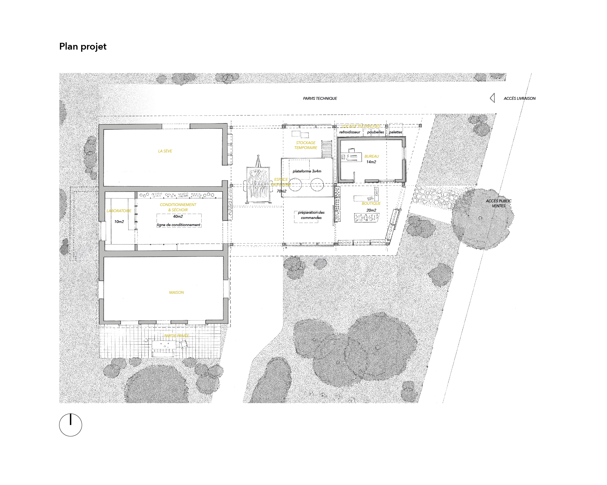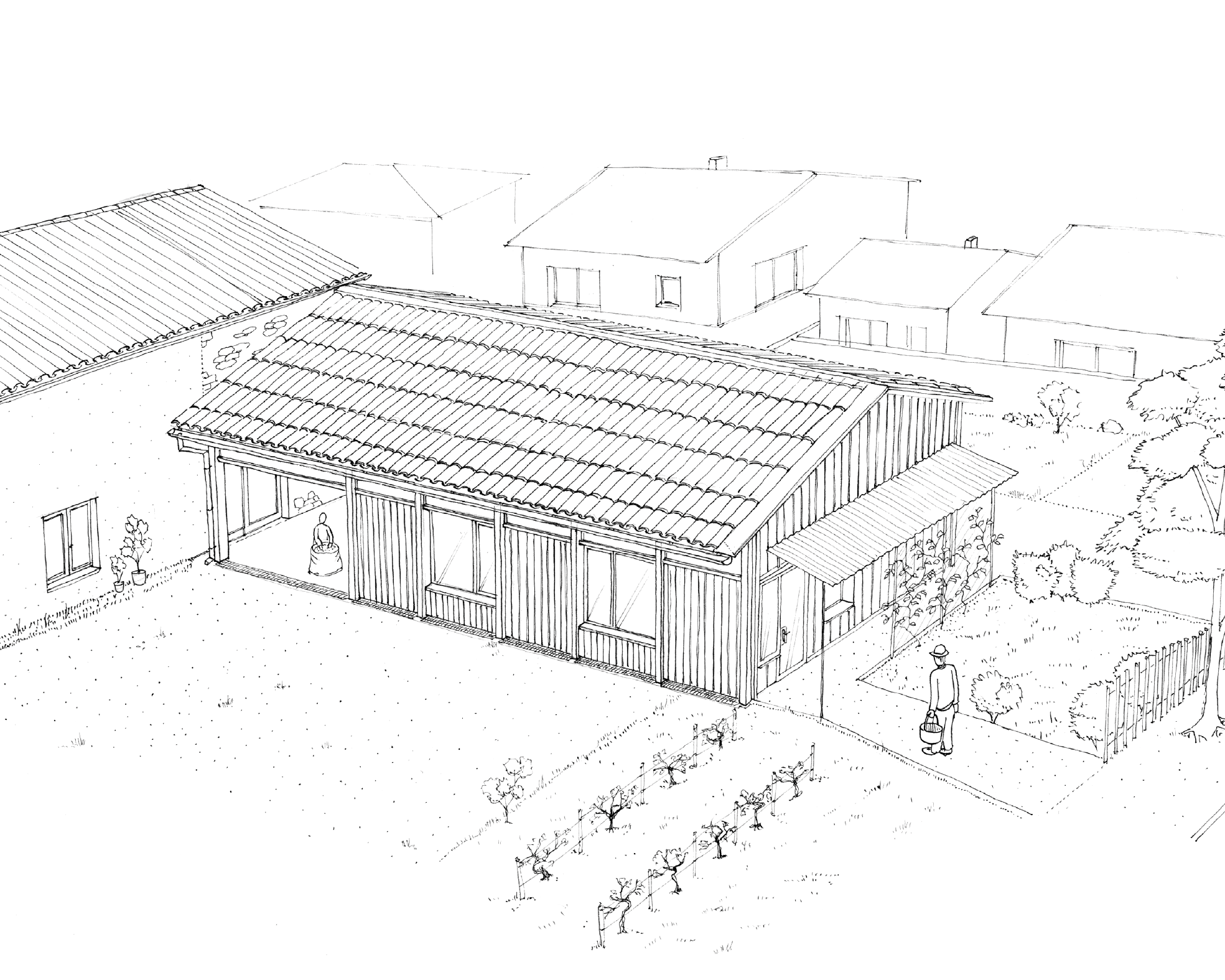 L’entreprise familiale FloraLuna est engagée dans la production d’huiles essentielles biologique depuis 10 ans. L’activité est grandissante et l’entreprise souhaite investir dans un nouvel outil de distillation pour développer sa production. Nous intervenons sur un site existant, construit au fil des ans avec peu de moyens. Dans un contexte contraint par l’outil de production, le projet consiste à clarifier les flux tout en s’adaptant à l’existant. Pour tenir le projet malgré l’inflation et les difficultés d’approvisionnement des dernières années, nous faisons alliance avec un charpentier-compagnon-scieur. Travailler en collaboration étroite avec les artisans nous permet de mettre en oeuvre des détails de construction maitrisés. Le sciage des bois permet aussi l’emploi d’essences de bois locales comme le cèdre, le douglas et l’acacia.