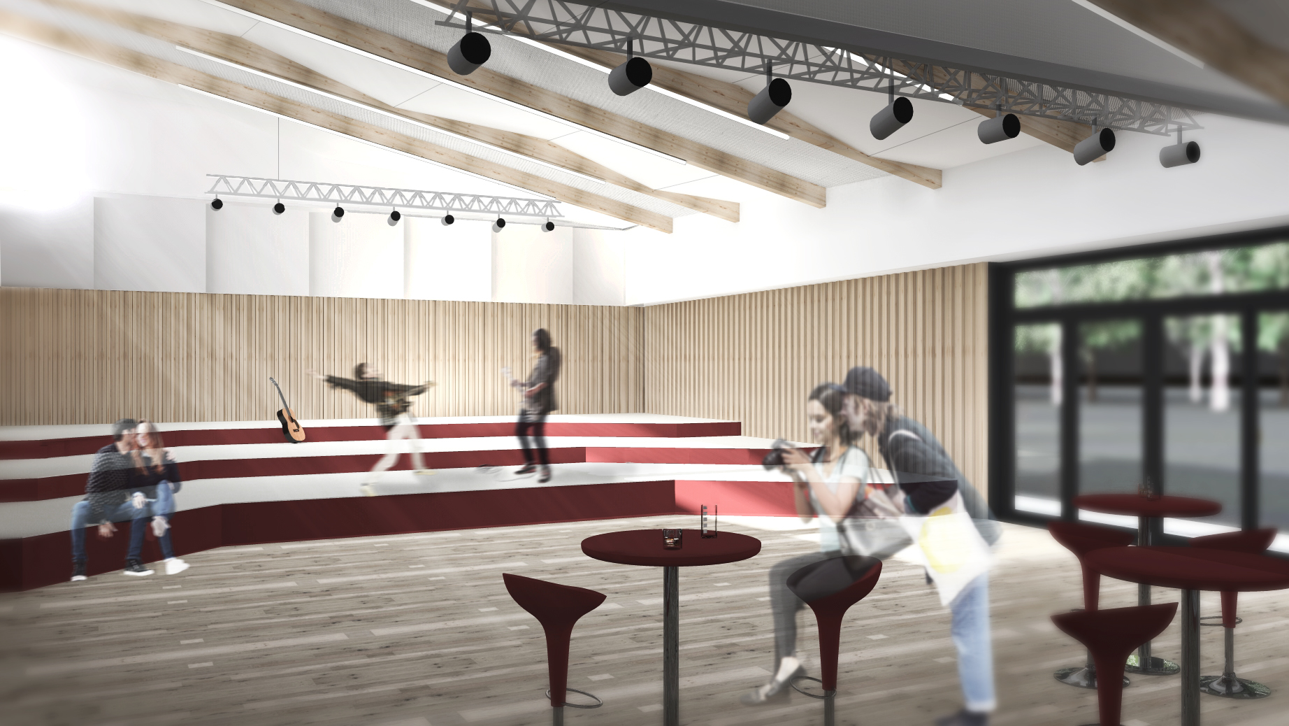Le projet consiste en l’extension de la salle polyvalente et le réaménagement des sanitaires. L’idée du projet est de redonner une nouvelle image à cette salle polyvalente construite dans les années 80 et de revaloriser l’entrée du site.