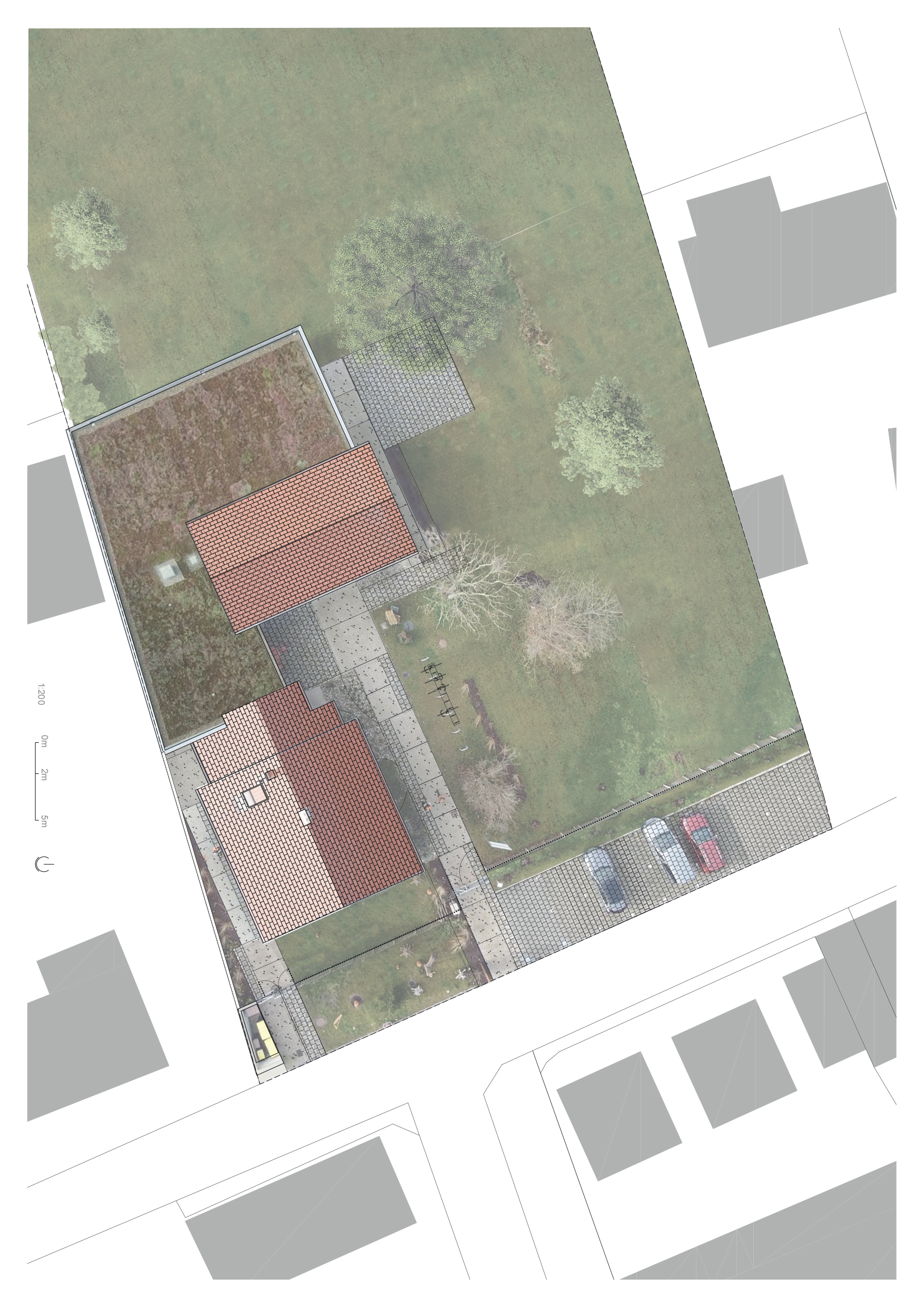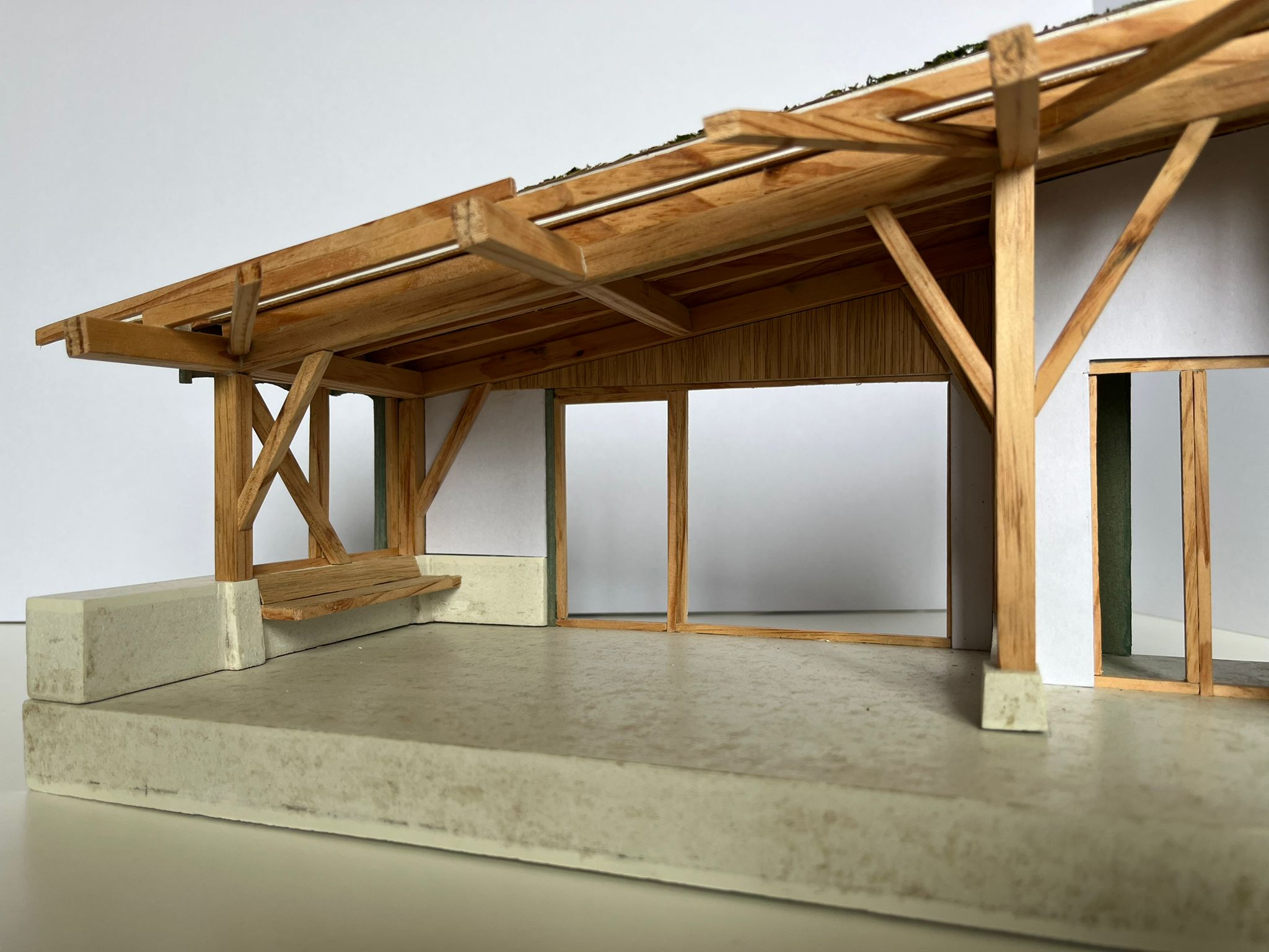 Approche environnementale : L’un des points forts de ce projet réside dans le choix minutieux des matériaux écologiques et locaux. Le bois utilisé pour les travaux provient directement de la forêt voisine, ce qui réduit drastiquement l’empreinte carbone liée au transport tout en favorisant les circuits courts. Les galets du Rhin ont été intégrés aux aménagements extérieurs, évoquant la proximité géographique du fleuve et soulignant l’identité régionale. À l’intérieur, des solutions naturelles et biosourcées ont été privilégiées : isolation en miscanthus et laine de bois, peinture à l’huile de lin, et réemploi de pierres.