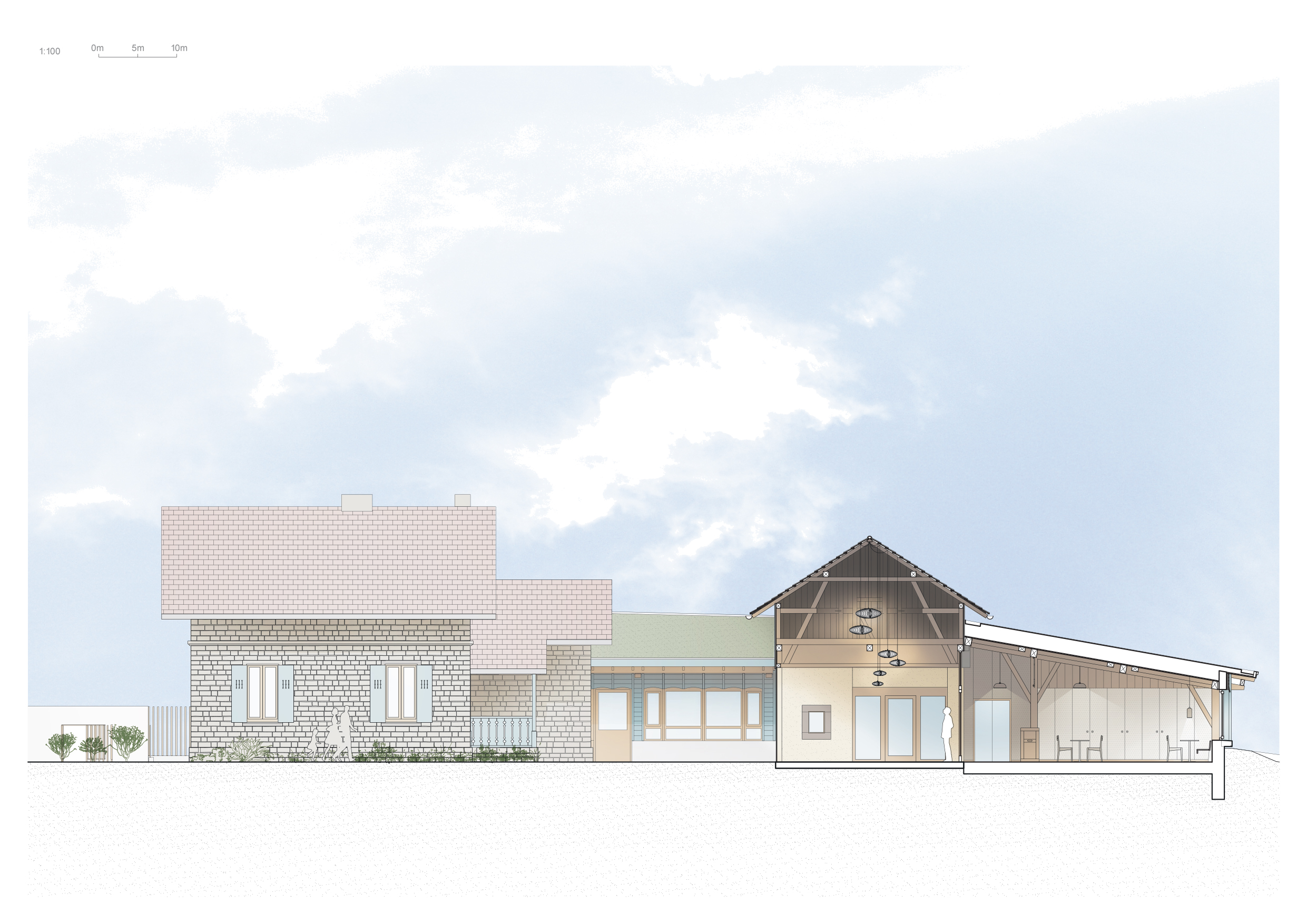 Démarche exemplaire de valorisation patrimoniale et d’architecture durable (bâtiment du XIXe siècle), inscrite dans une réflexion globale sur l’écologie et l’économie circulaire. Les extensions réalisées ont été conçues dans une démarche de sobriété et de discrétion architecturale. Elles s’intègrent parfaitement au paysage grâce à une toiture végétalisée (réduction impact visuelle, thermique, gestion eaux pluviales). L’entrée a été pensée comme une transition fluide entre l’histoire du lieu et ses usages actuels, invitant les visiteurs à découvrir un espace qui conjugue mémoire et modernité.
