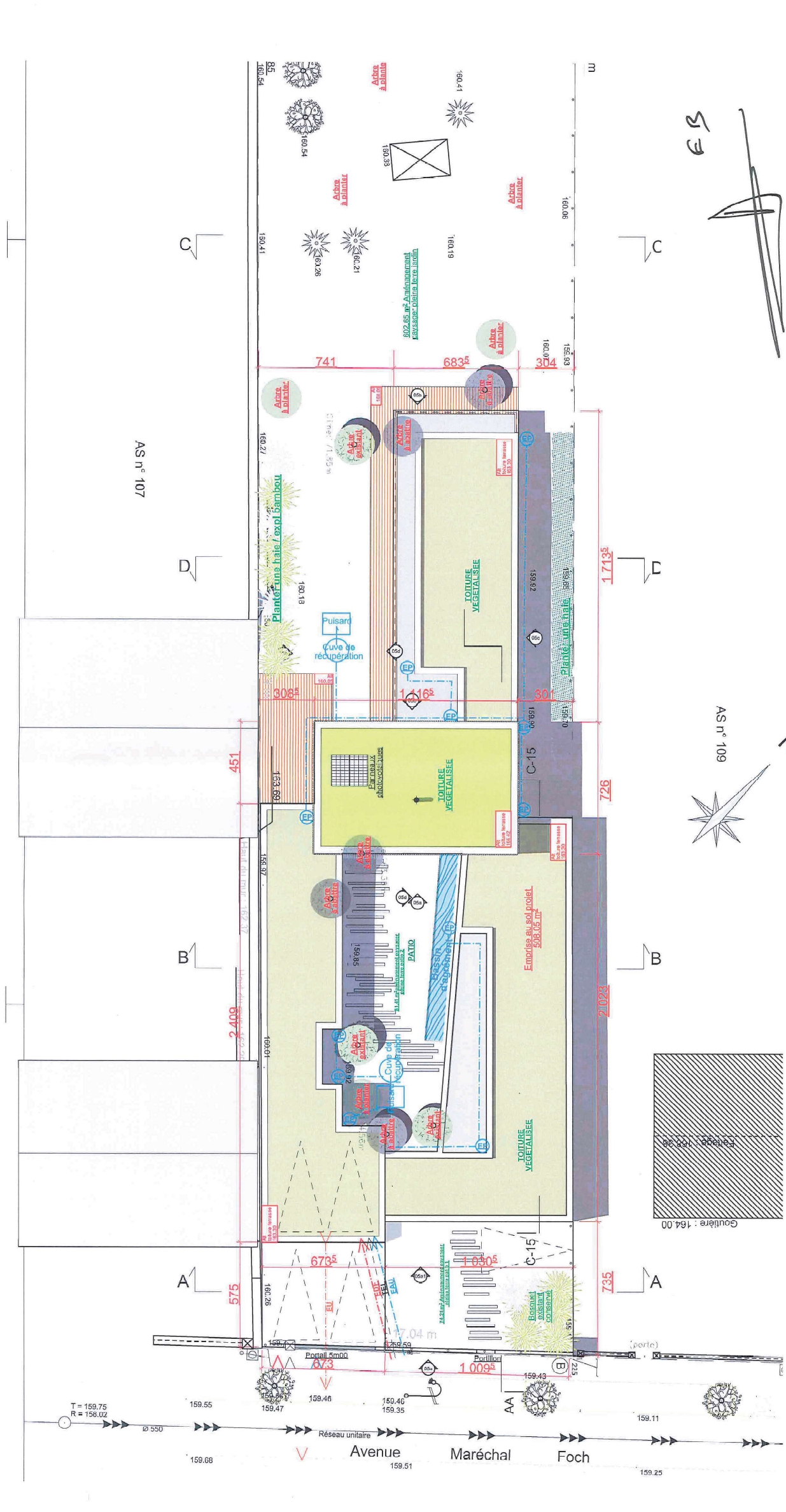 Approche environnementale : Toitures végétalisées - Récupération des EP - Isolation thermique renforcée - Menuiseries extérieures passives - Géothermie par forage vertical - Protections solaires par casquettes, BSO et aménagement paysagé - Ouvertures au nord limitées